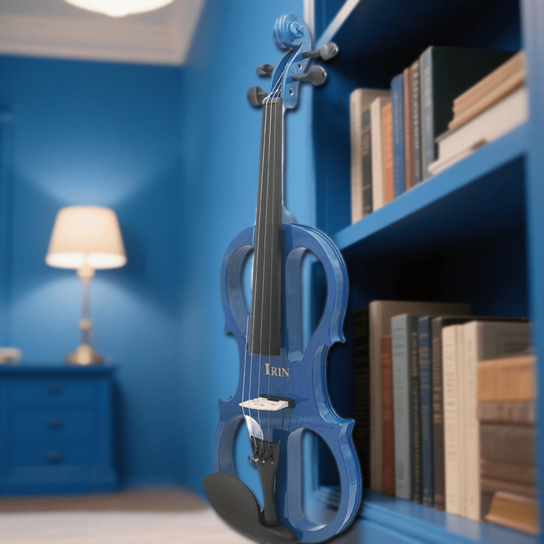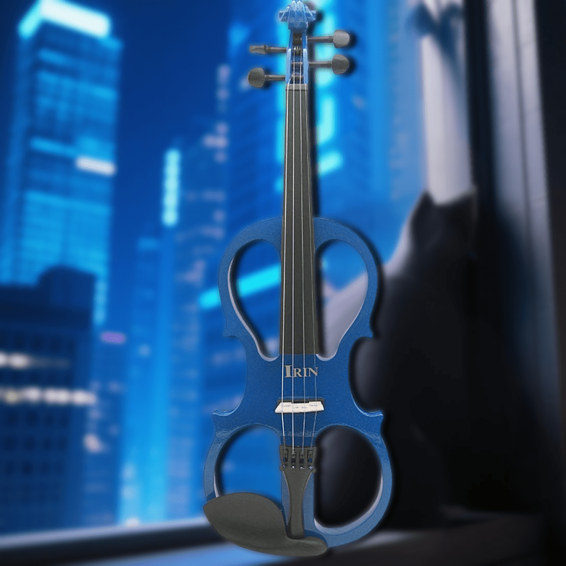 Violín eléctrico de tamaño completo Serie 4/4 de IRIN AU, madera maciza tallada a mano, con conectividad de dispositivos de música externos, incluye auriculares, cables, 36V de potencia, negro, estuche triangular